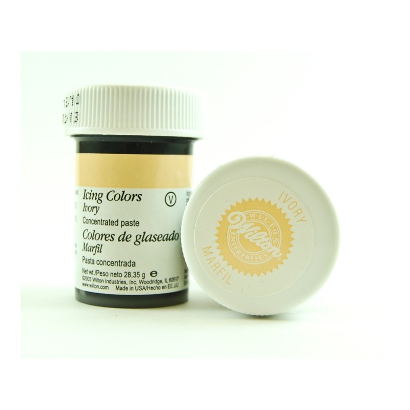 Colorante alimentario Wilton en formato de gel concentrado en color MARFIL. Los colorantes en gel de Wilton, son una completa gama de colarantes en brillantes colores, con los que podrás colorear glaseado, fondant, mazapán, buttercream, masa para galletas y más. Incluso puedes mezclar dos colores de la gama entre sí para crear tu propio color. 28 GR