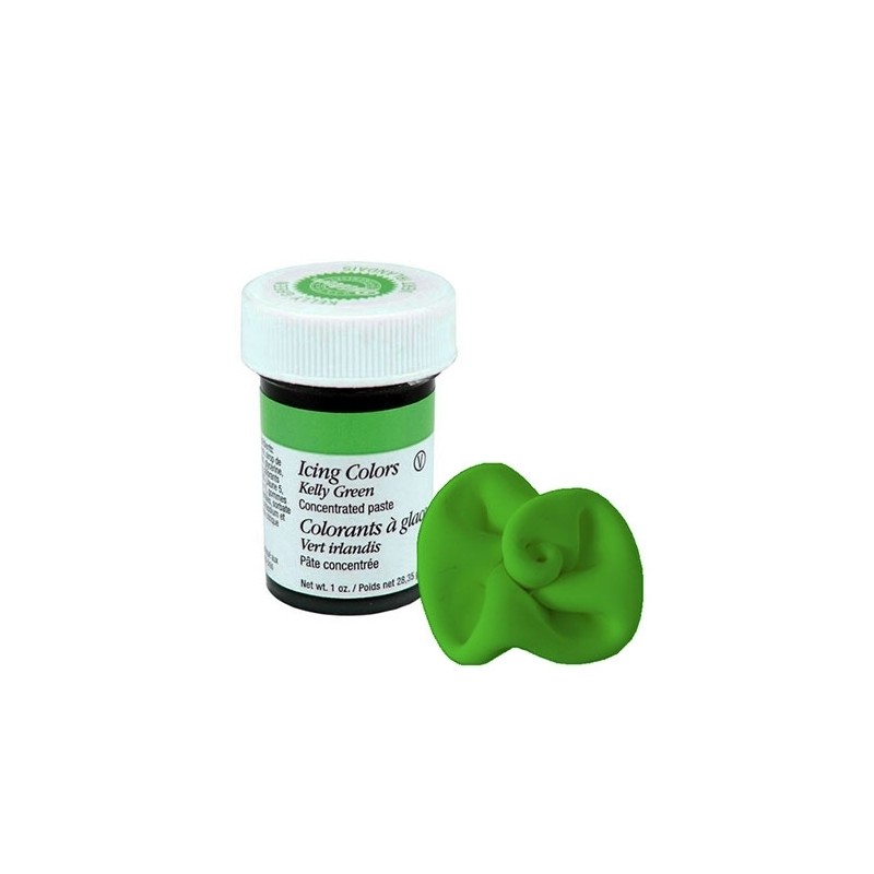 Colorante alimentario Wilton en formato de gel concentrado en color VERDE KELLY. Los colorantes en gel de Wilton, son una completa gama de colarantes en brillantes colores, con los que podrás colorear glaseado, fondant, mazapán, buttercream, masa para galletas y más. Incluso puedes mezclar dos colores de la gama entre sí para crear tu propio color. 28 GR