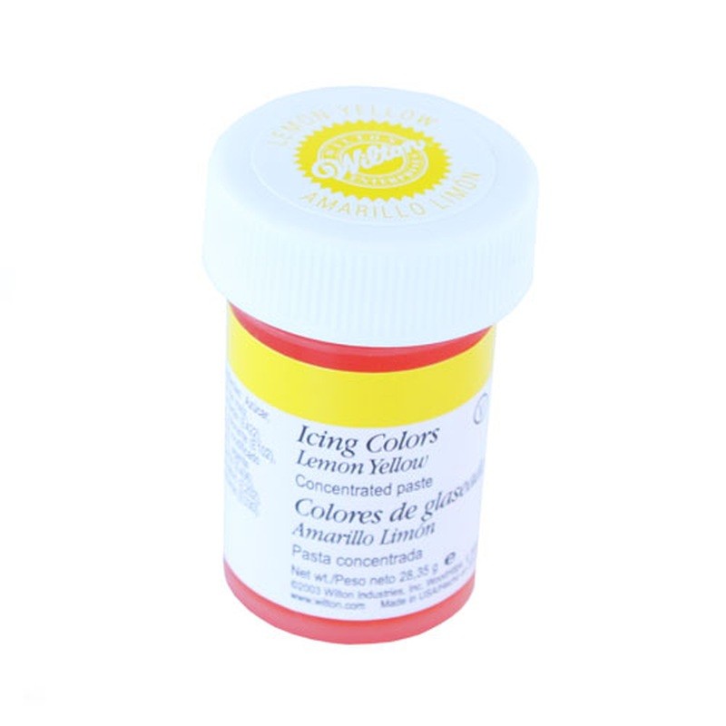 Colorante alimentario Wilton en formato de gel concentrado en color AMARILLO LIMÓN. Los colorantes en gel de Wilton, son una completa gama de colarantes en brillantes colores, con los que podrás colorear glaseado, fondant, mazapán, buttercream, masa para galletas y más. Incluso puedes mezclar dos colores de la gama entre sí para crear tu propio color. 28 GR
