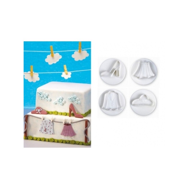 SET 4 CORTADORES CON EXPULSOR MODA MUJER (ZAPATO, CHAQUETA, FALDA Y SOMBRERO)