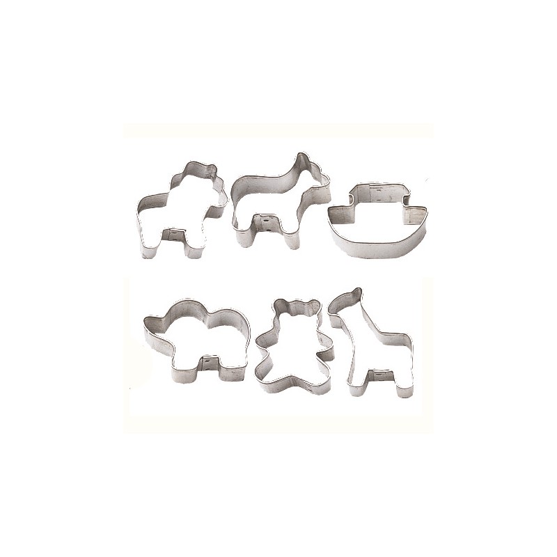 Set de moldes cortadores con diversos animales y el Arca de Noé. Set de 6 moldes cortadores. Tamaño de aproximadamente 3,75cm.
