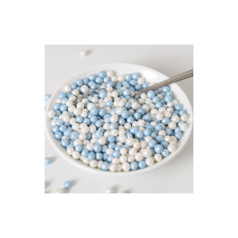 BOTE PERLAS AZUCAR AZUL Y BLANCO 6 MM