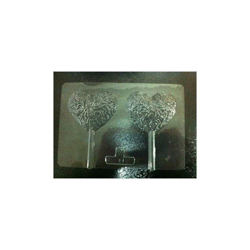 MOLDE PVC 2 PIRULETAS CORAZON 3D CON ROSAS