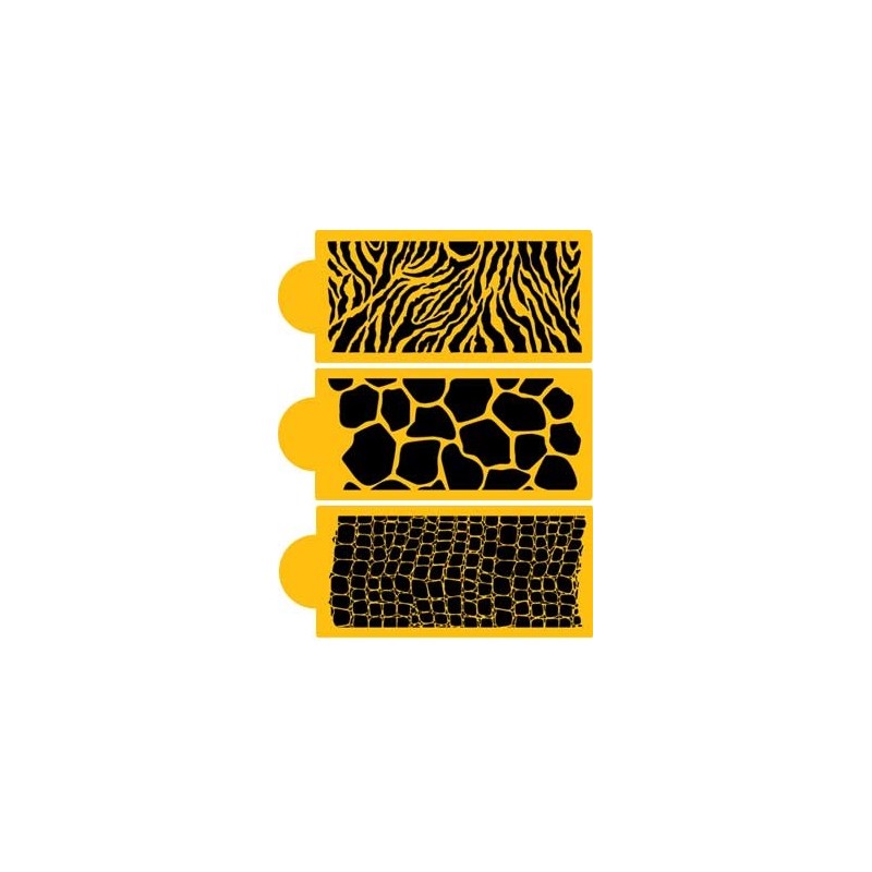 SET 3 STENCIL ANIMAL PRINT CEBRA SERPIENTE Y JIRAFA 25.5 CM X 12 CM
