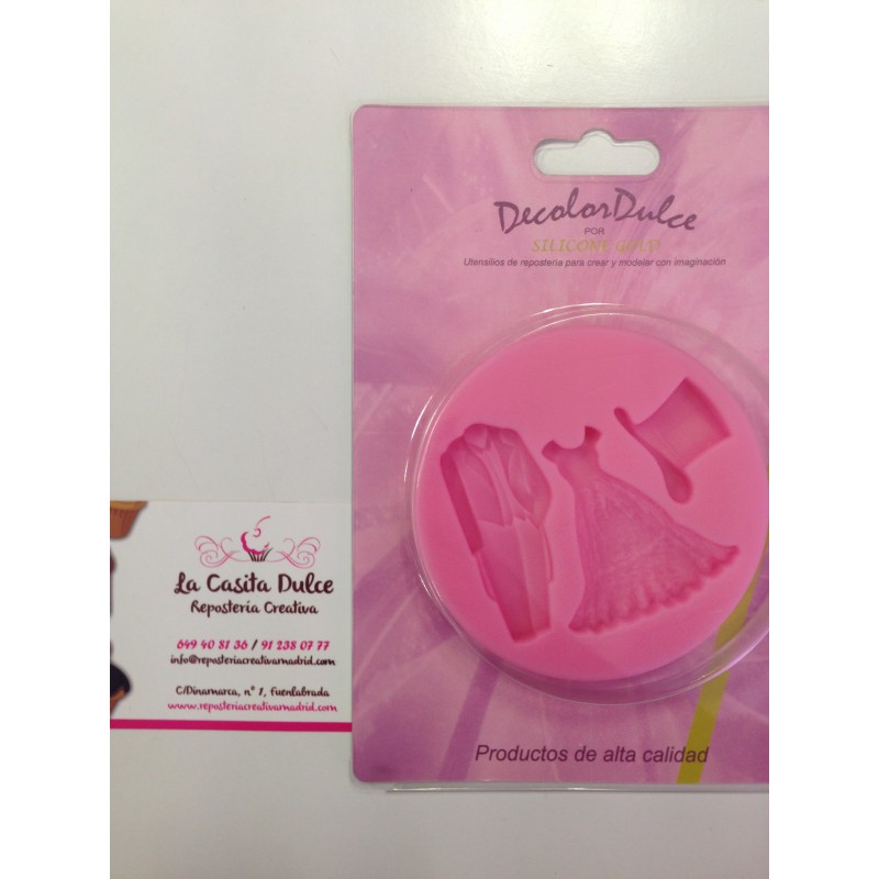 MOLDE SILICONA PARA FONDANT "TRAJES NOVIOS"
