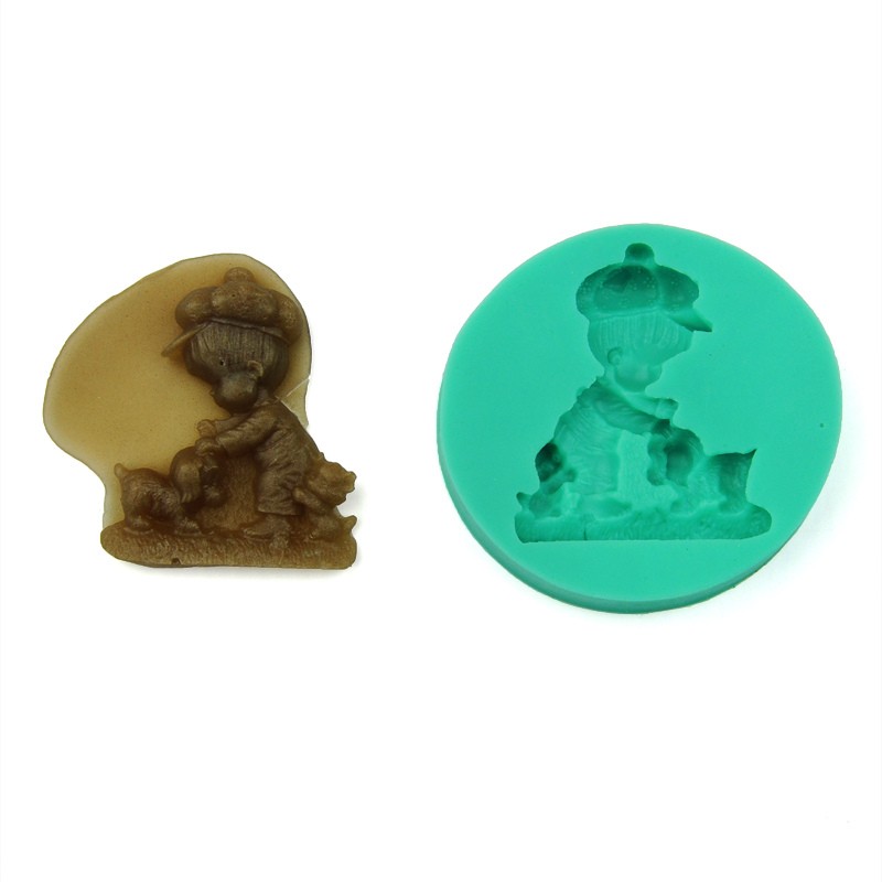MOLDE DE SILICONA PARA FONDANT "NIÑO CON PERRITO"