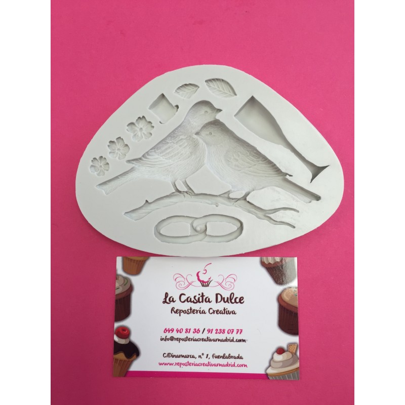 MOLDE DE SILICONA PARA FONDANT "PAJARITOS BODA ELEGANCE"