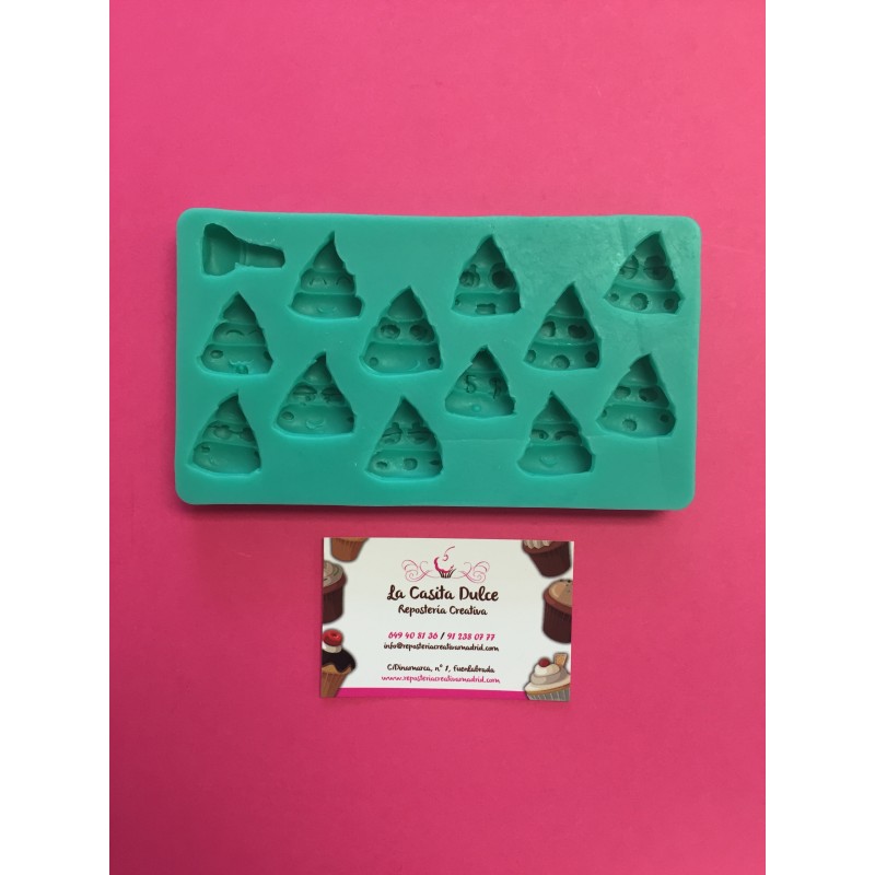 MOLDE DE SILICONA PARA FONDANT, CHOCOLATE, ISOMALT.... "13 CACAS FELICES Y DESATASCADOR"
