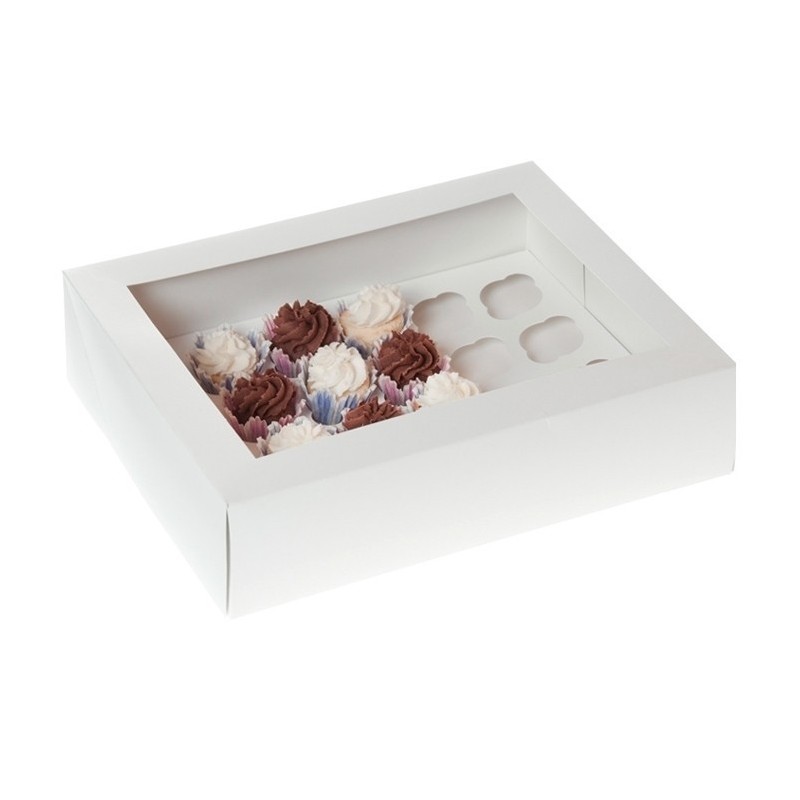 Caja de transporte para 24 mini cup cakes color blanco con ventana