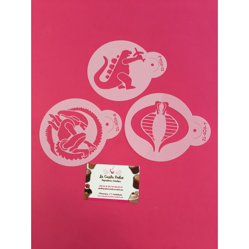 SET 3 STENCIL ALIEN VS PREDATOR, GIJOE Y GOZILLA