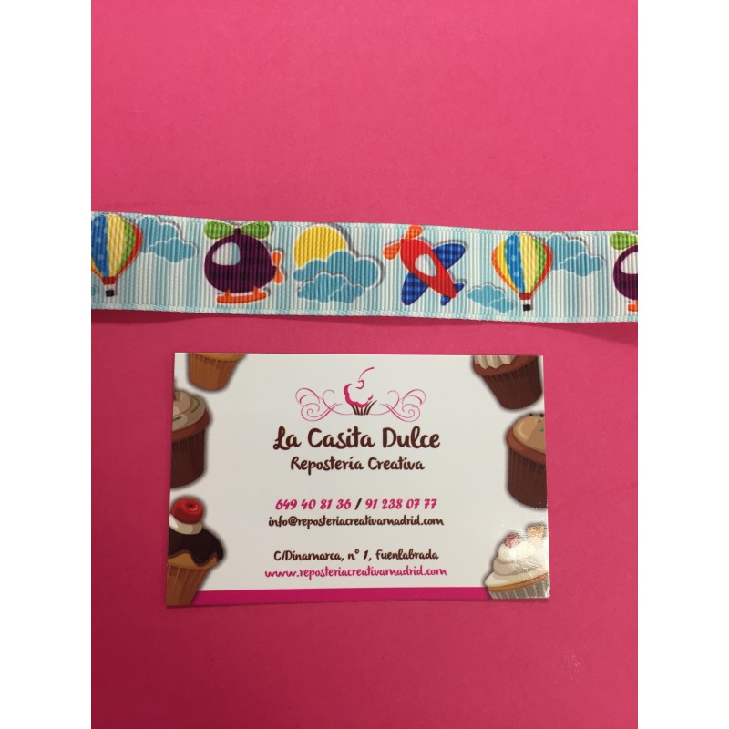CINTA DECORATIVA 1'5 CM "GLOBOS AVIONES Y HELICOPTEROS"