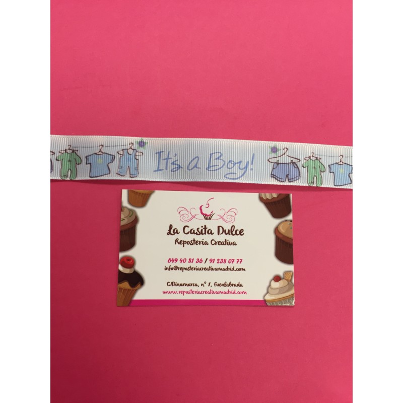 CINTA DECORATIVA 1'5 CM "IT'S A BOY ROPA COLGADA"