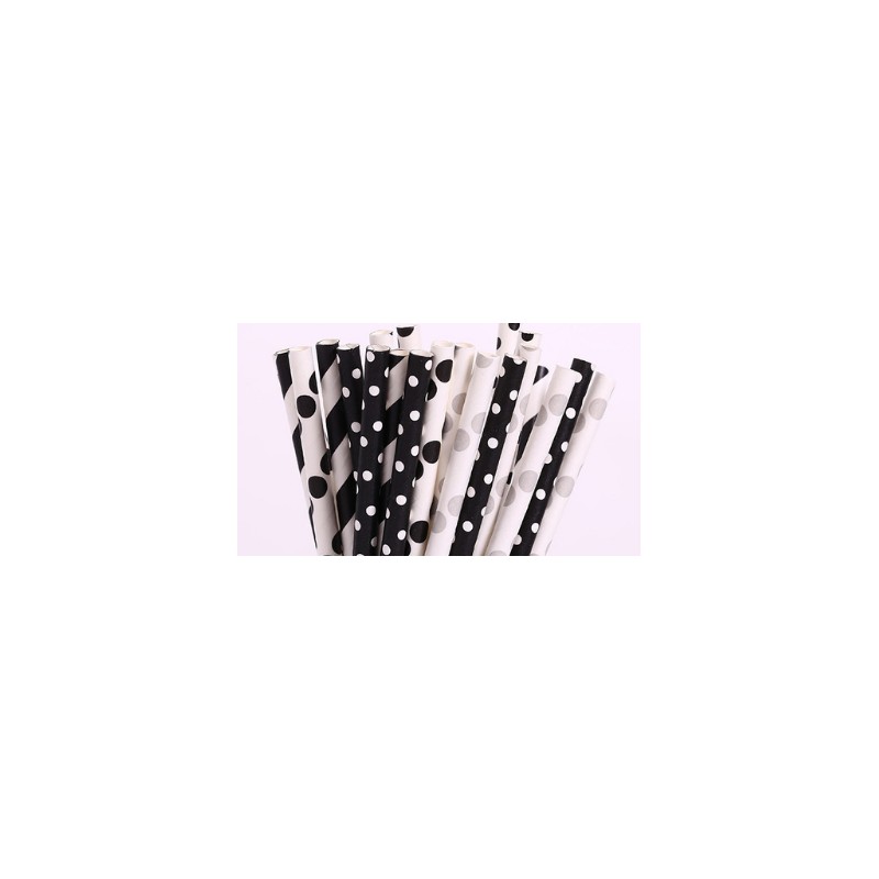 25 PAJITAS PAPEL MIX NEGRO Y PLATA