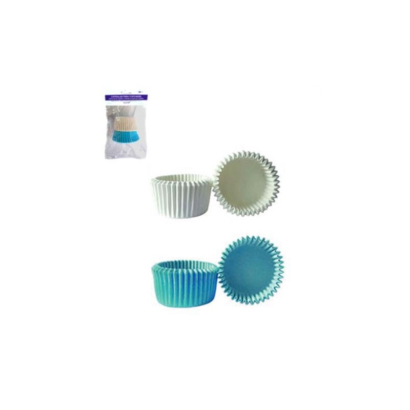 50 CAPSULAS MINI CUPCAKES AZULES Y BLANCAS AN