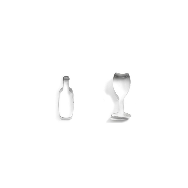 SET 2 CORTADORES METAL WINE COPA Y BOTELLA DE VINO 9 CM APROX