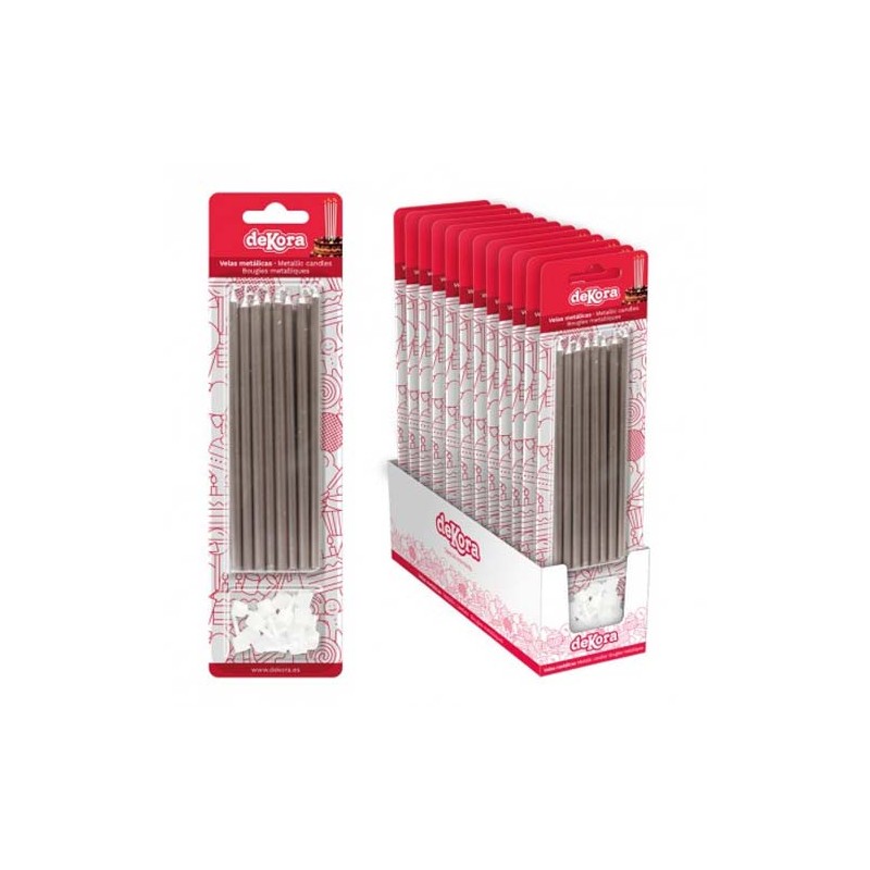 SET 16 VELAS LARGAS 13 CM PLATEADAS DEKORA