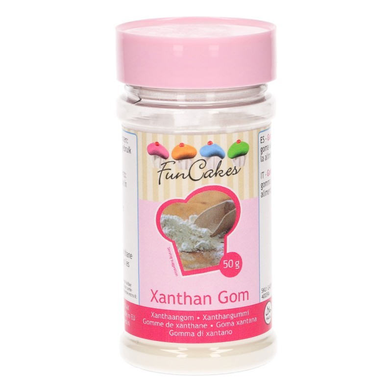 La goma xantana se utiliza en repostería y en cocina en general como un agente espesante y de unión, es un emulsionante y un estabilizador. Este aditivo alimenticio en polvo, además de sus aplicaciones en repostería, se utiliza en productos alimenticios tales como helados, aderezos para ensaladas, yogur y crema agria. Se utiliza como un sustituto de gluten, lo que lo hace especialmente útil en aquellas preparaciones donde no se puede usar el trigo para espesar. Los que sufren de enfermedad celíaca o intolerancia al gluten pueden utilizar la goma xantana, junto con las harinas que no contienen trigo como la de arroz o de frijol.