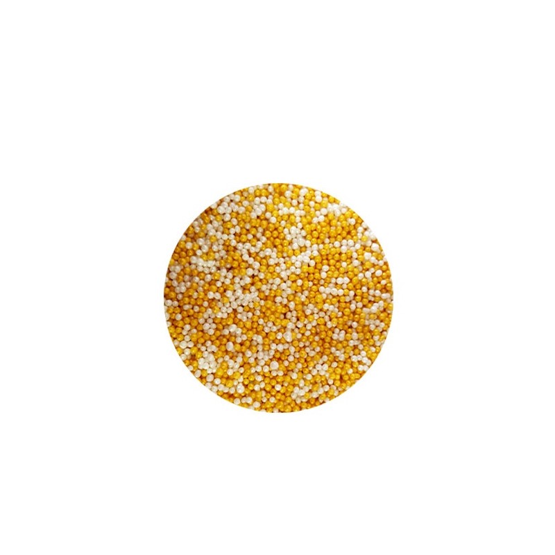 PERLITAS AZUCAR 1 MM NONPAREILS AMARILLO DORADO Y BLANCO BOTE 30 GR APROX