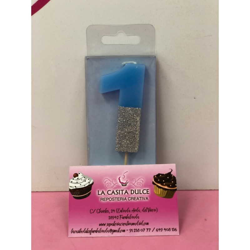 VELA Nº 1 AZUL Y PLATA GLITTER