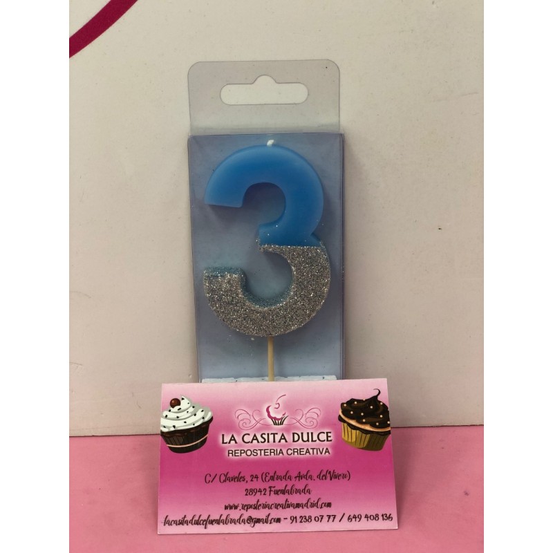 VELA Nº 3 AZUL Y PLATA GLITTER