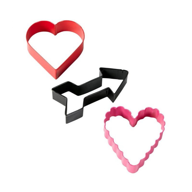 SET 3 CORTADORES SAN VALENTIN LACADOS EN COLOR ROSA ROJO Y NEGRO