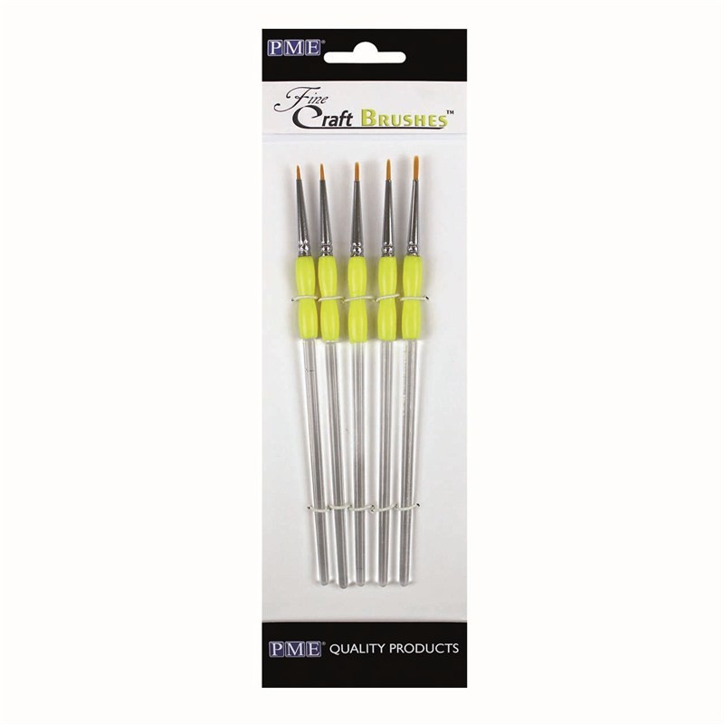 Un práctico conjunto de 5 pinceles finos surtidos ideales para pintar y agregar detalles finos a todo tipo de creaciones artesanales. Estos cepillos vienen con una sección fácil de agarrar en el mango de plástico transparente que hace que sea más fácil de controlar y trabajar. La parte plástica lisa y transparente del mango también se puede usar como un pequeño rodillo cuando se extienden pequeños trozos delicados de pasta de azúcar.