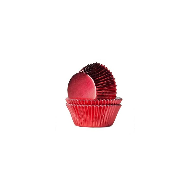 48 CAPSULAS MINI CUPCAKES COLOR ROJO PASION METALIZADO