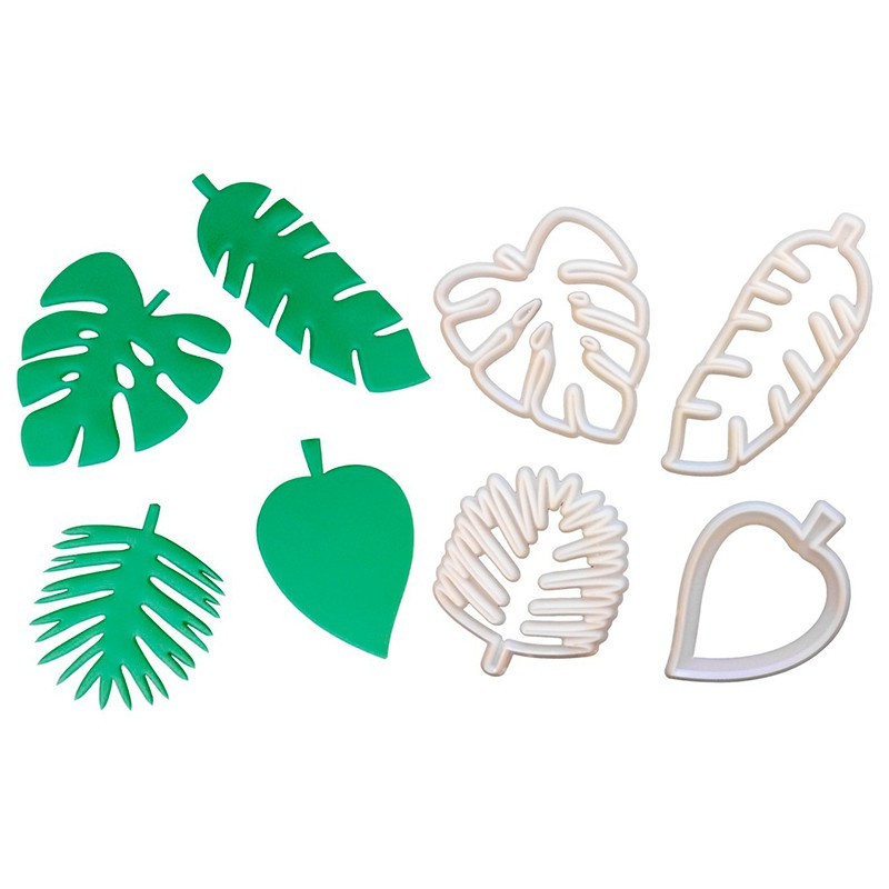 Set de 4 cortadores tappit con forma de hojas tropicales, con diferentes diseños
