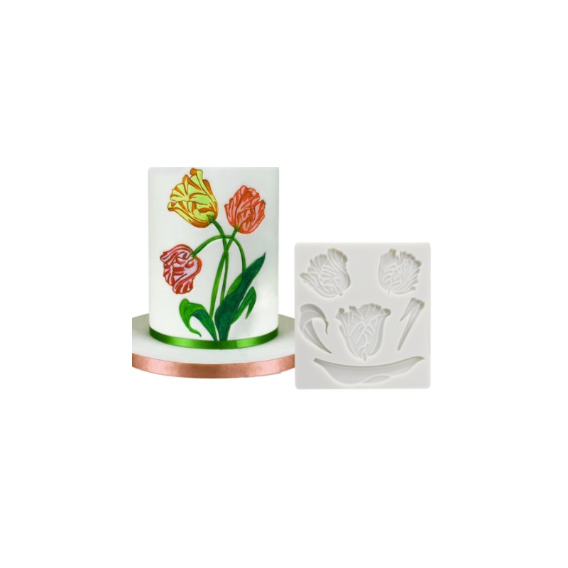 MOLDE DE SILICONA PARA FONDANT "TULIPANES EN 2D O PLANOS PLACA GRANDE"