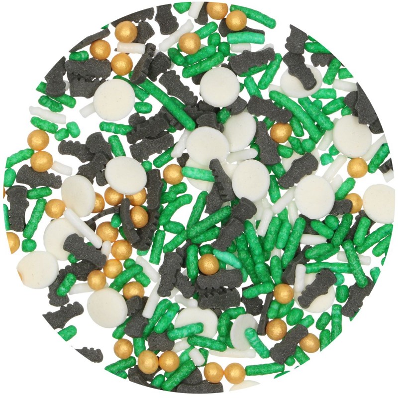 Decora fácilmente los cupcakes de fútbol con esta mezcla de sprinkles de FunCakes. La mezcla es ideal para pastelillos temáticos, por ejemplo, la Liga, la Copa de Europa, el Mundial, etc.