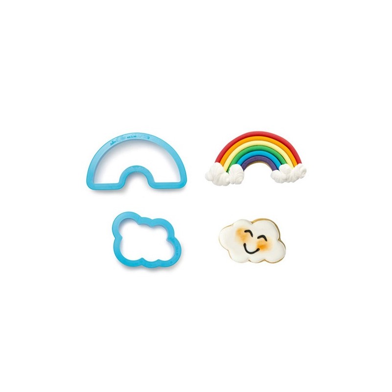 Tamaño cortadores: Arco Iris: 11 x 5.5 cm. Nube: 8 x 6 cm.