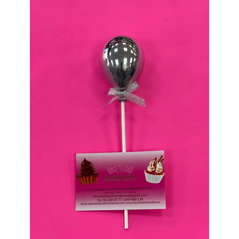 TOPPER GLOBO 3D PARA TARTAS O DRIP CAKES COLOR PLATA METALIZADO