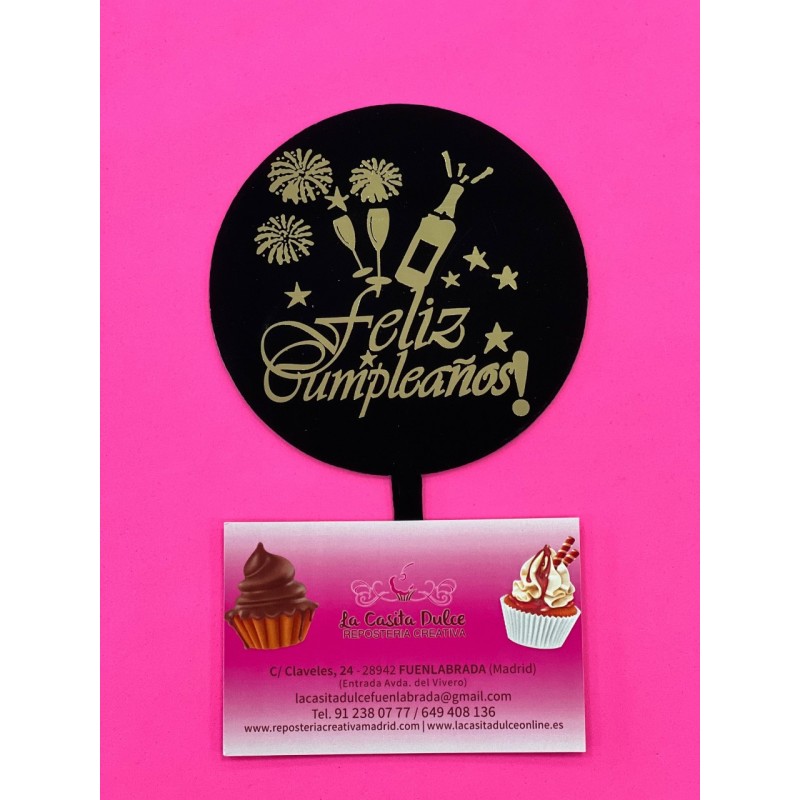 TOPPER PARA TARTA METACRILATO NEGRO Y ORO