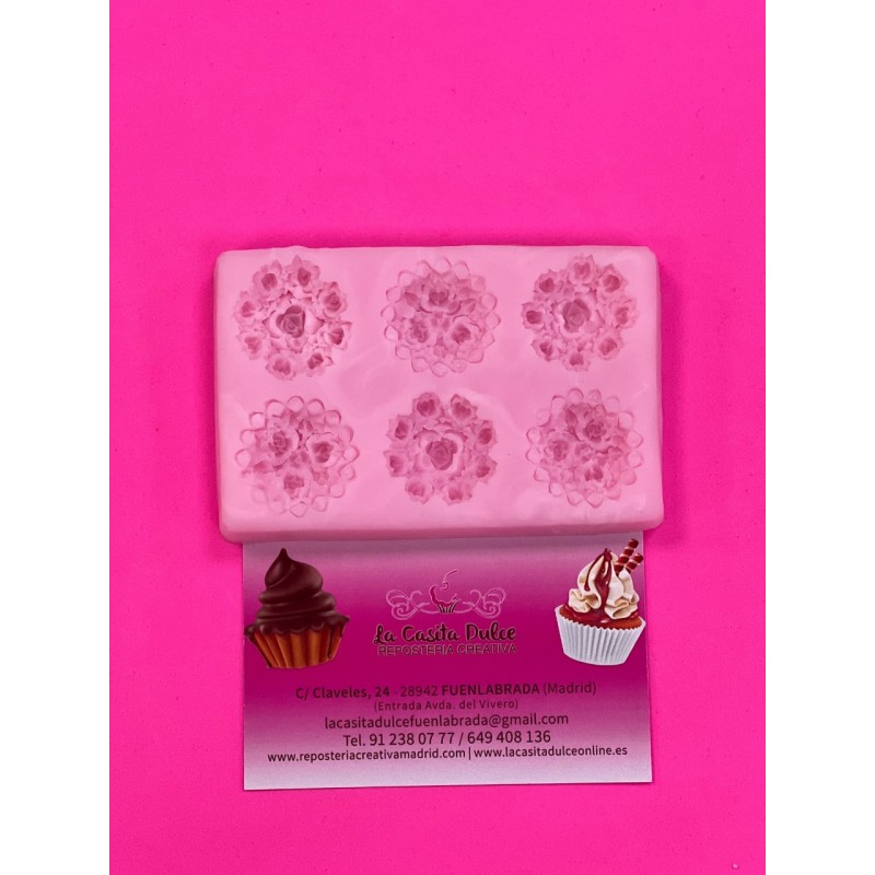 MOLDE DE SILICONA PARA FONDANT "6 BROCHES FLORES JOYAS CAMAFEOS ROSAS"