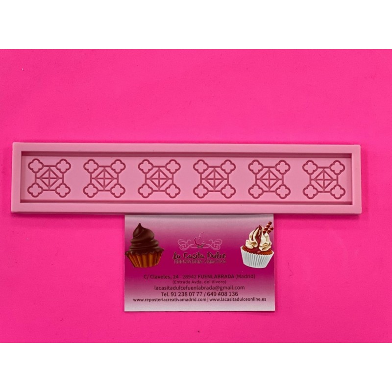 MOLDE DE SILICONA PARA FONDANT "FILIGRANA CENEFA GRECA GEOMETRICA AZULEJO"