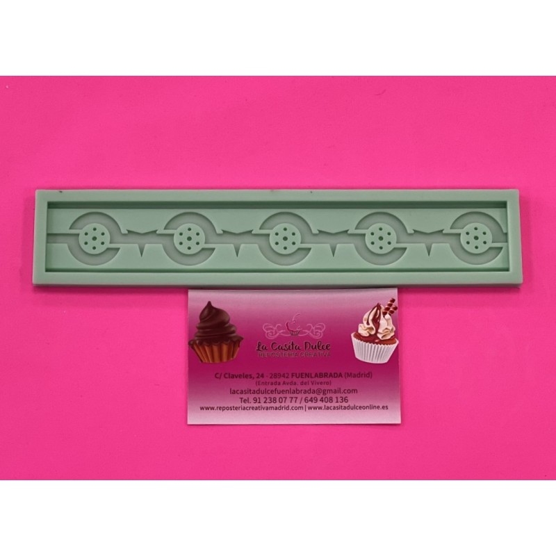 MOLDE DE SILICONA PARA FONDANT "FILIGRANA CENEFA RUEDAS WHEELS"