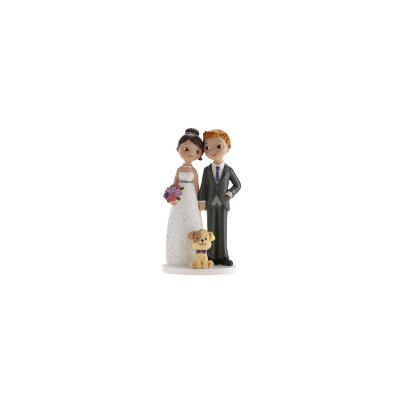 Bonita figura para tarta con los novios y un perrito de mascota de Dekora