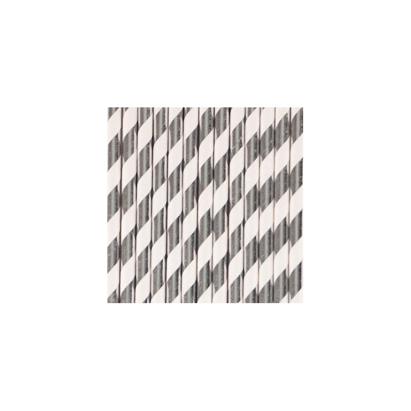 PACK 14 PAJITAS PAPEL PLATEADAS Y BLANCAS RAYAS