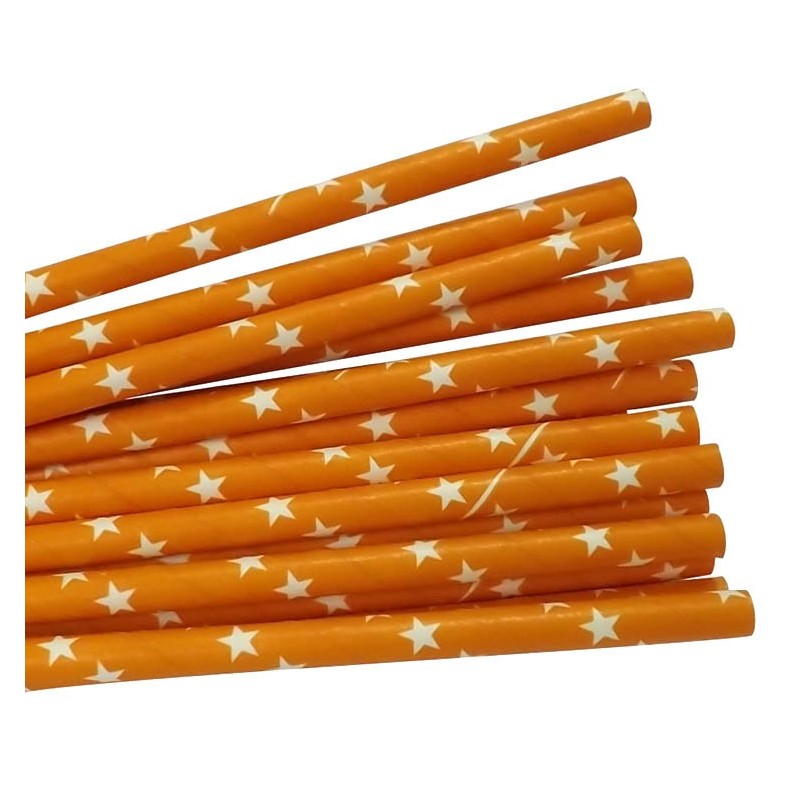 PACK 25 PAJITAS PAPEL NARANJAS Y ESTRELLAS BLANCAS