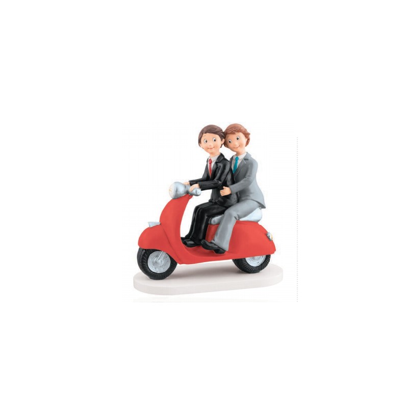 FIGURA NOVIOS GAY PARA TOPPER DE TARTA SUBIDO EN MOTO ROJA