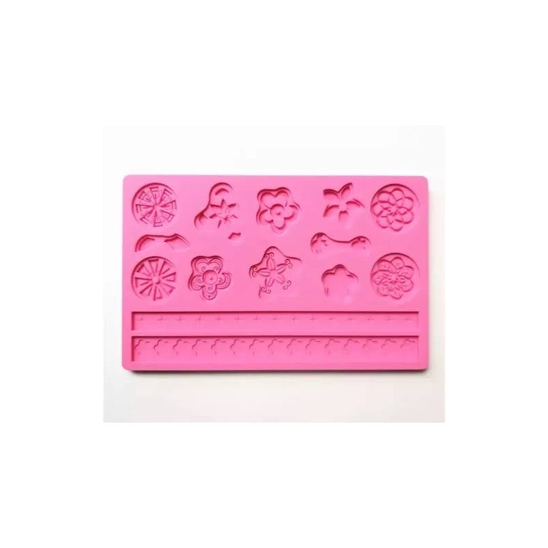 MOLDE SILICONA FONDANT PLACA FLORES Y FRUTAS