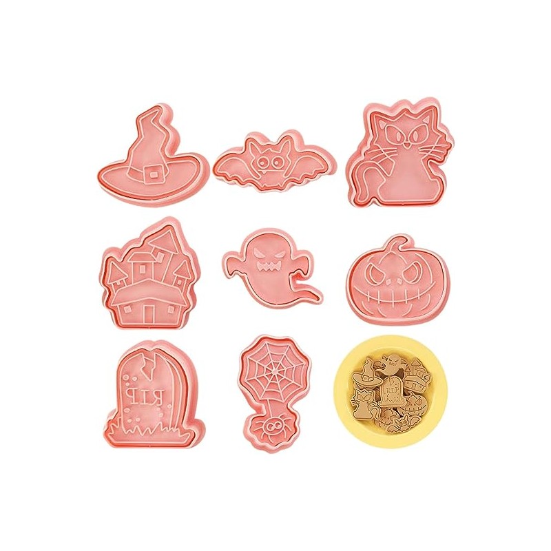 SET 8 CORTADORES CON MARCADOR DE DISEÑOS DE HALLOWEEN