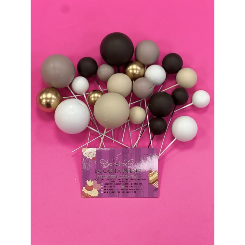 PACK 22 BOLAS O BURBUJAS TOPPER DECORACION MIX MARRONES Y ORO