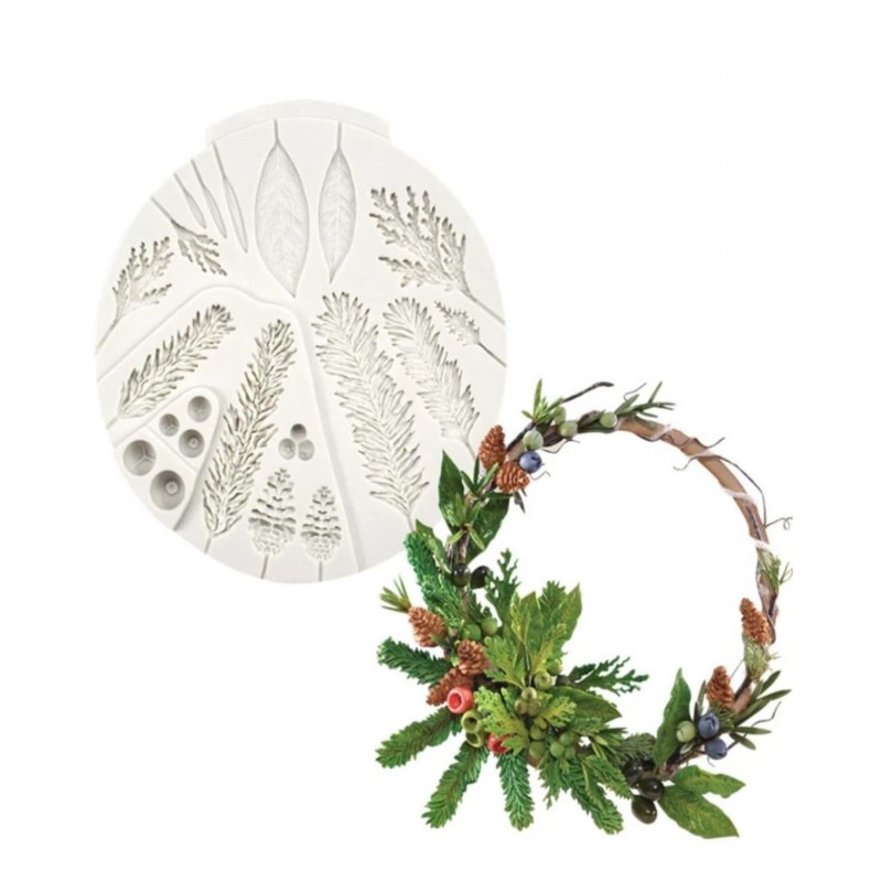 MOLDE SILICONA HOJAS Y PIÑAS INVIERNO