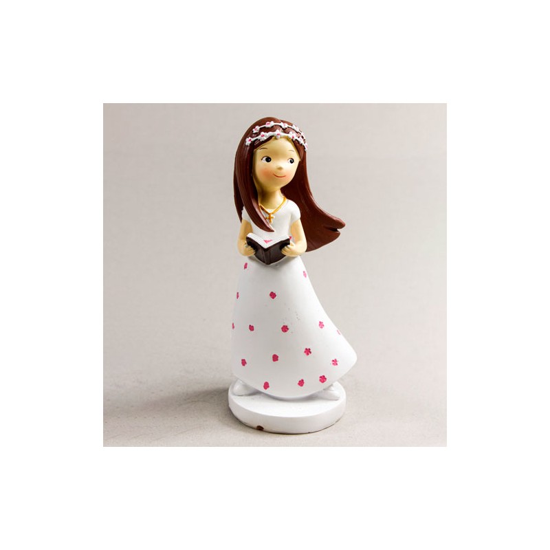 FIGURA NIÑA COMUNION CON BIBLIA Y VESTIDO CON FLORES
