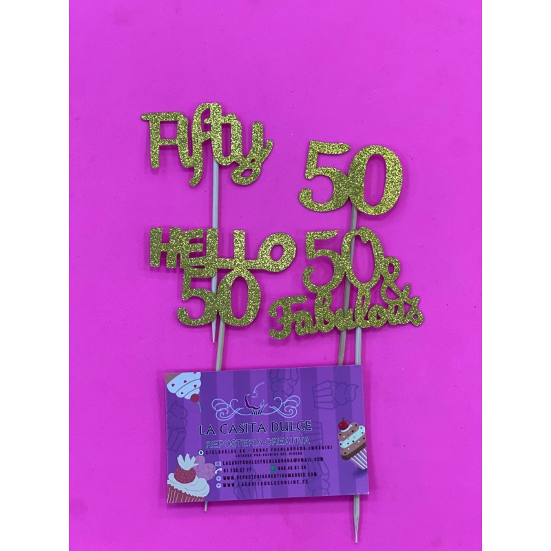 SET 4 TOPPER 50 ANIVERSARIO DORADO BRILLANTE CARTON