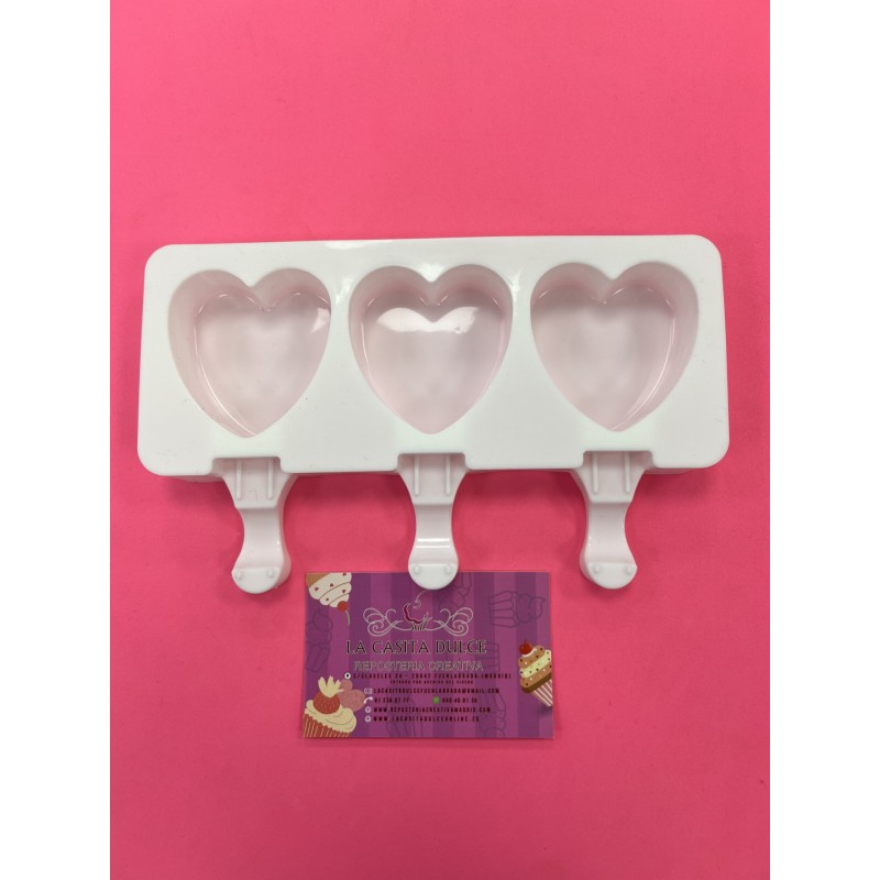 MOLDE SILICONA PROFESIONAL 3 POLOS HELADOS CORAZONES