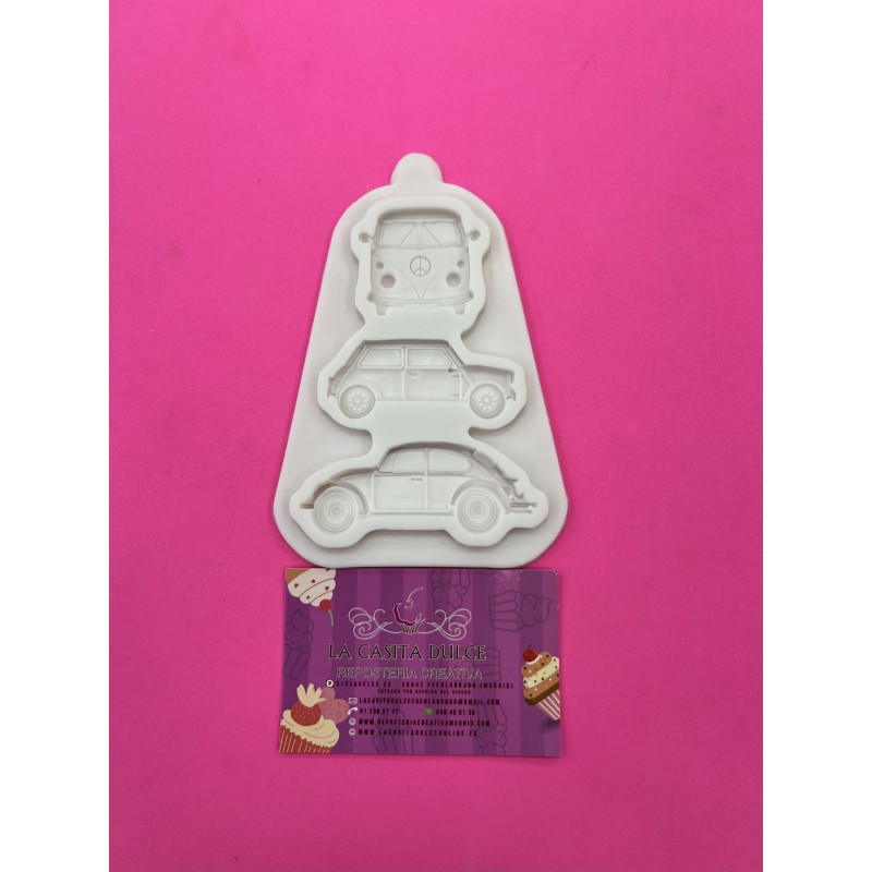 MOLDE DE SILICONA PARA FONDANT "3 COCHES Y VAN"