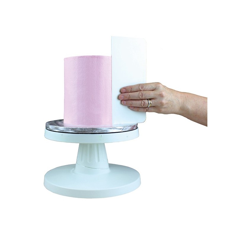Este raspador lateral de plástico con bordes lisos y altos es ideal para crear bordes lisos en tortas heladas o con crema de mantequilla.