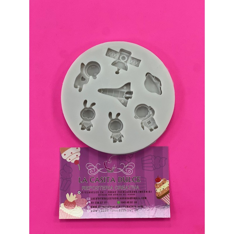 MOLDE SILICONA 7 ASTRONAUTAS Y SATELITES